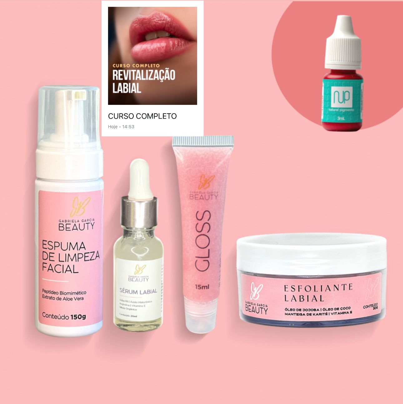 1 Sérum labial (Nutri Gloss) + 1 Gloss Preenchedor + 1 Esfoliante Labial + 1 Espuma de limpeza + GANHE GRÁTIS UM ESFOLIANTE FACIALBenefícios: Certificado, acesso vitalício, praticas em modelo, video aulas em alta qualidade, suporte via WhatsApp.
